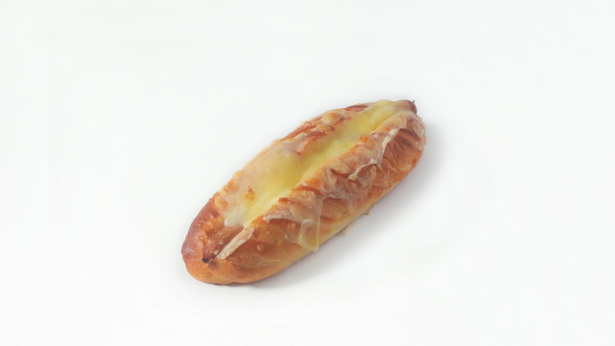 ヴィエノワ-ズにベシャメルとソーセージ、チーズをのせたフランス風ホットドック。
